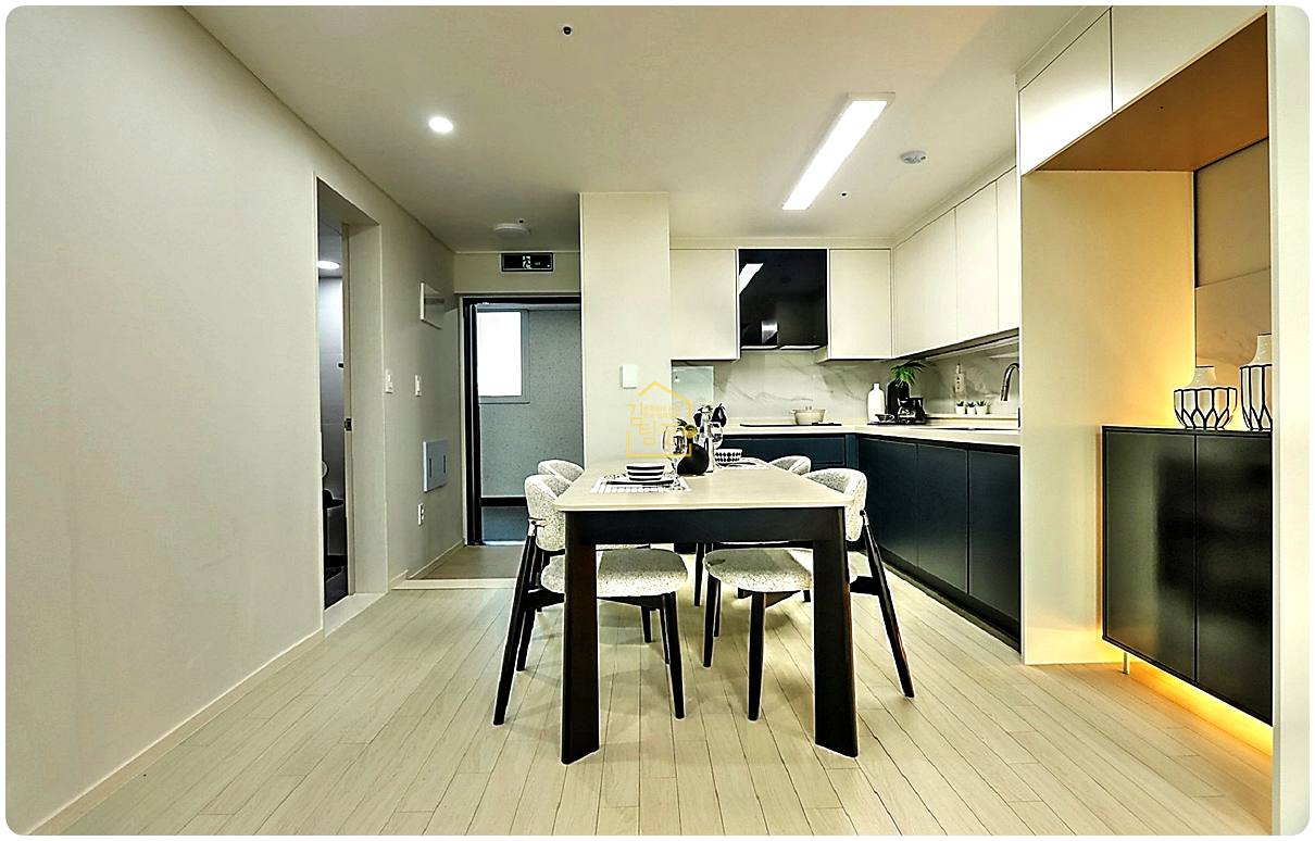 - 주방은 ㄱ자 구조 → 개별 식탁 배치 가능
