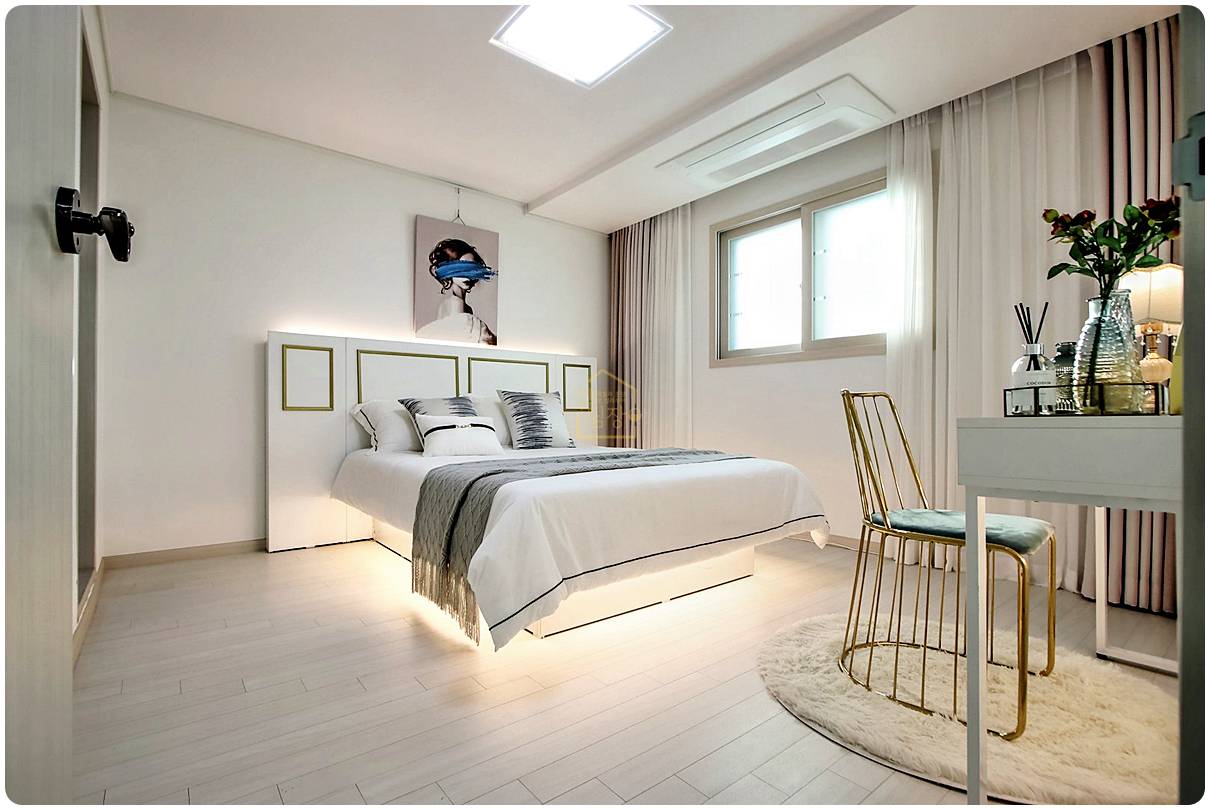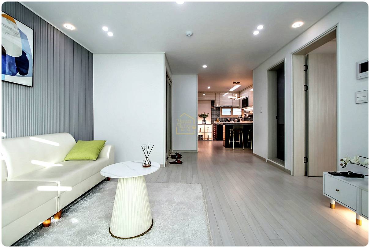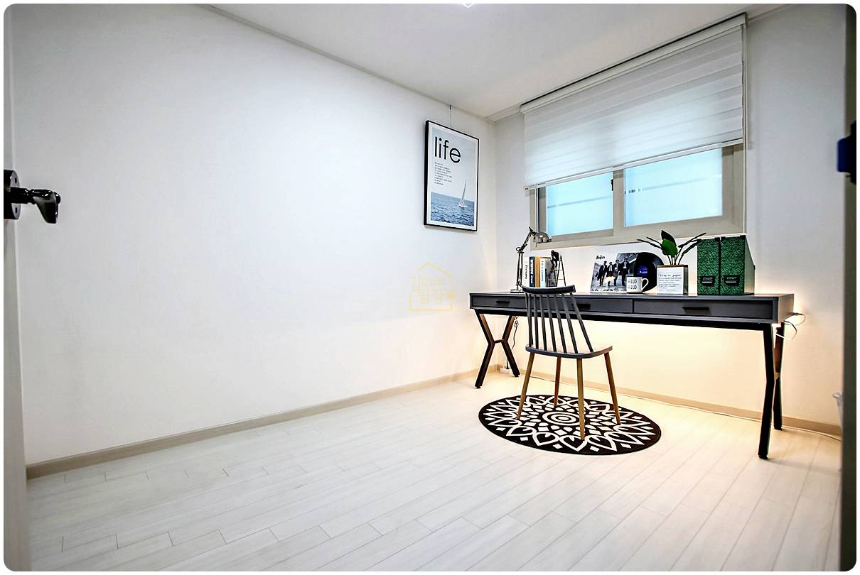 화이트 실크 벽지에 강마루 시공으로