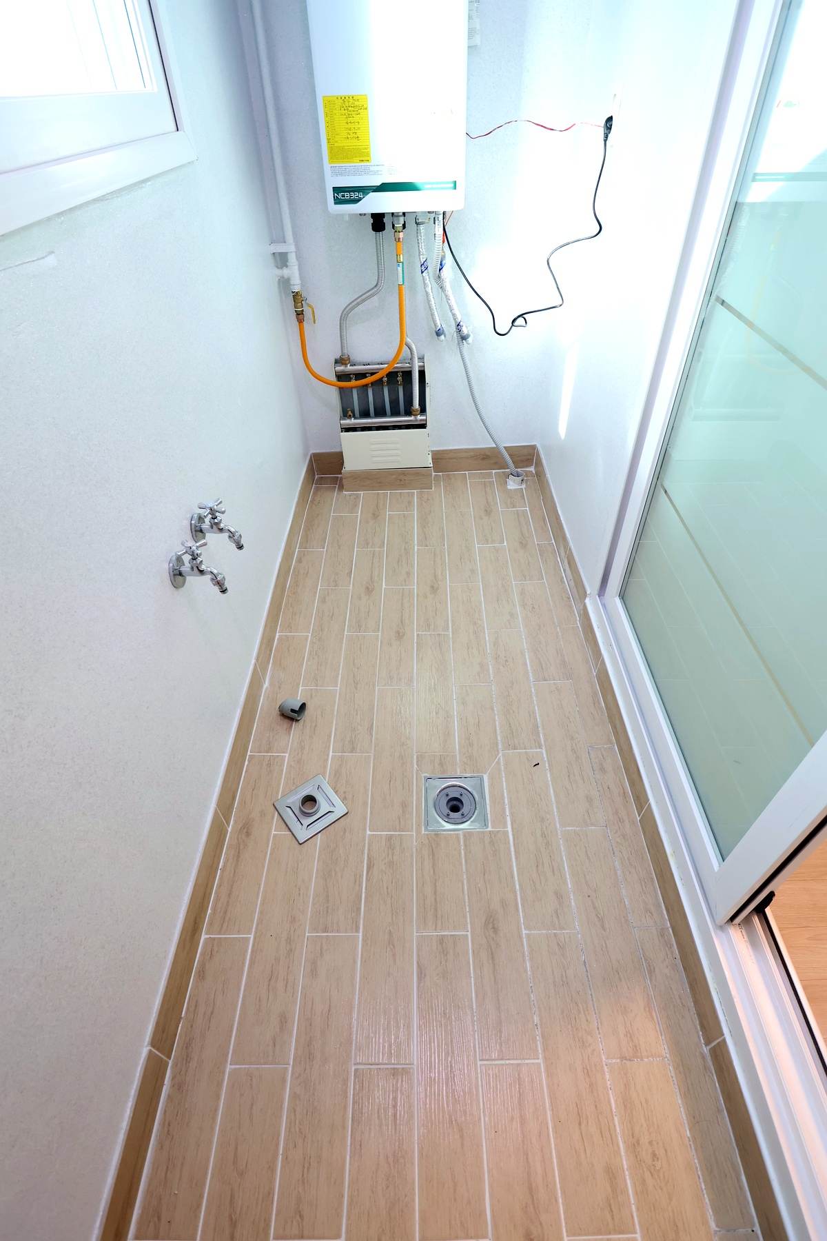 바닥은 미끄럼 방지 타일이 깔려 있어요.