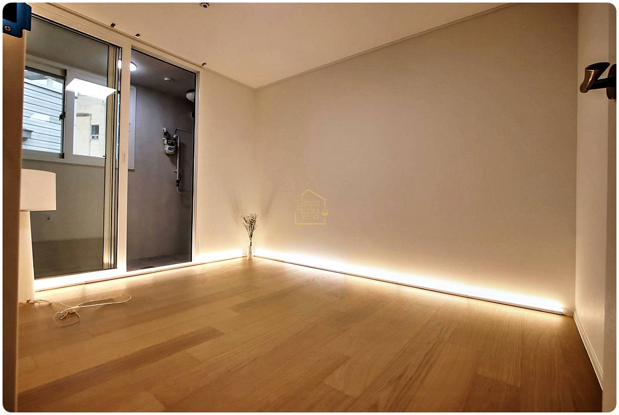 강마루 바닥재는 내구성이 좋아 아이들이 장난감을 가지고 놀아도 흠집 걱정이 덜할 것 같고, 소파와 TV 거실장을 배치하기에도 충분히 넓은 폭을 확보하고 있었습니다.