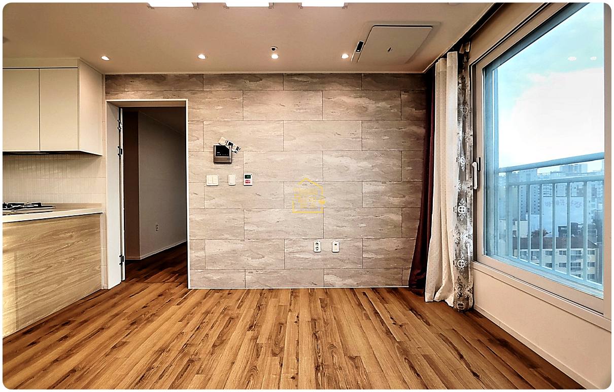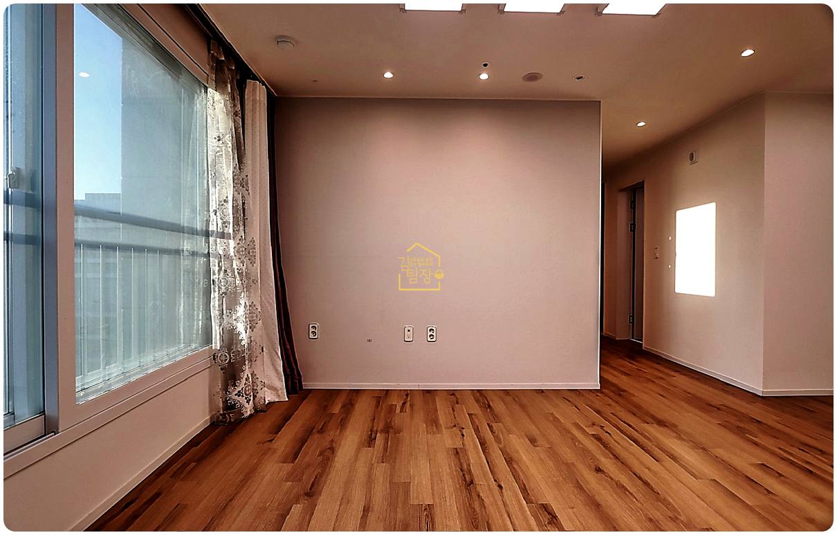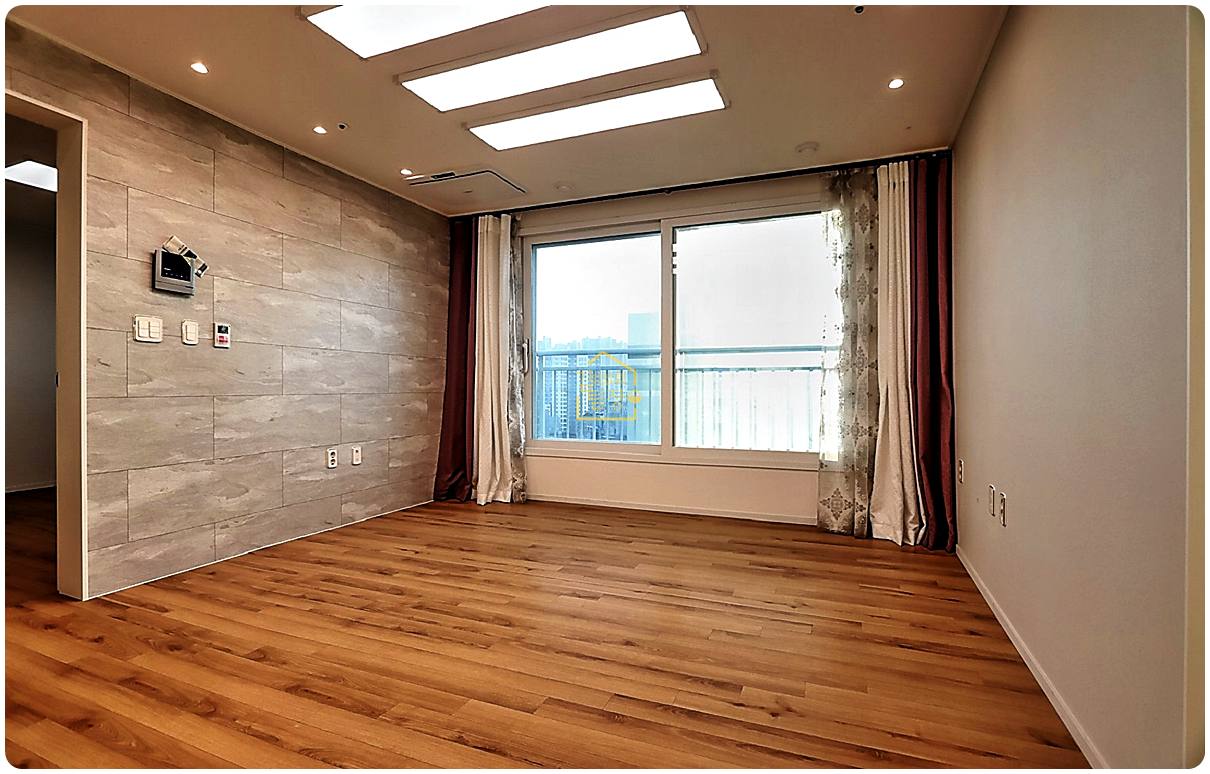 거실은 오픈형 구조로 개방감이 뛰어나며, 막힘없는 시티뷰와 풍부한 채광을 누릴 수 있다. 3인~4인 소파를 놓을 수 있는 넉넉한 사이즈와 함께 공기순환기 옵션도 설치되어 있다.