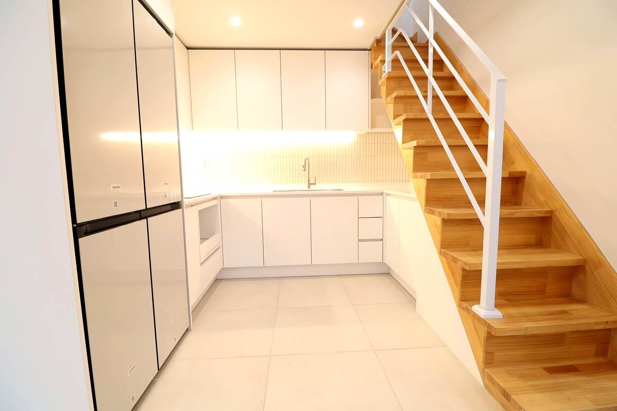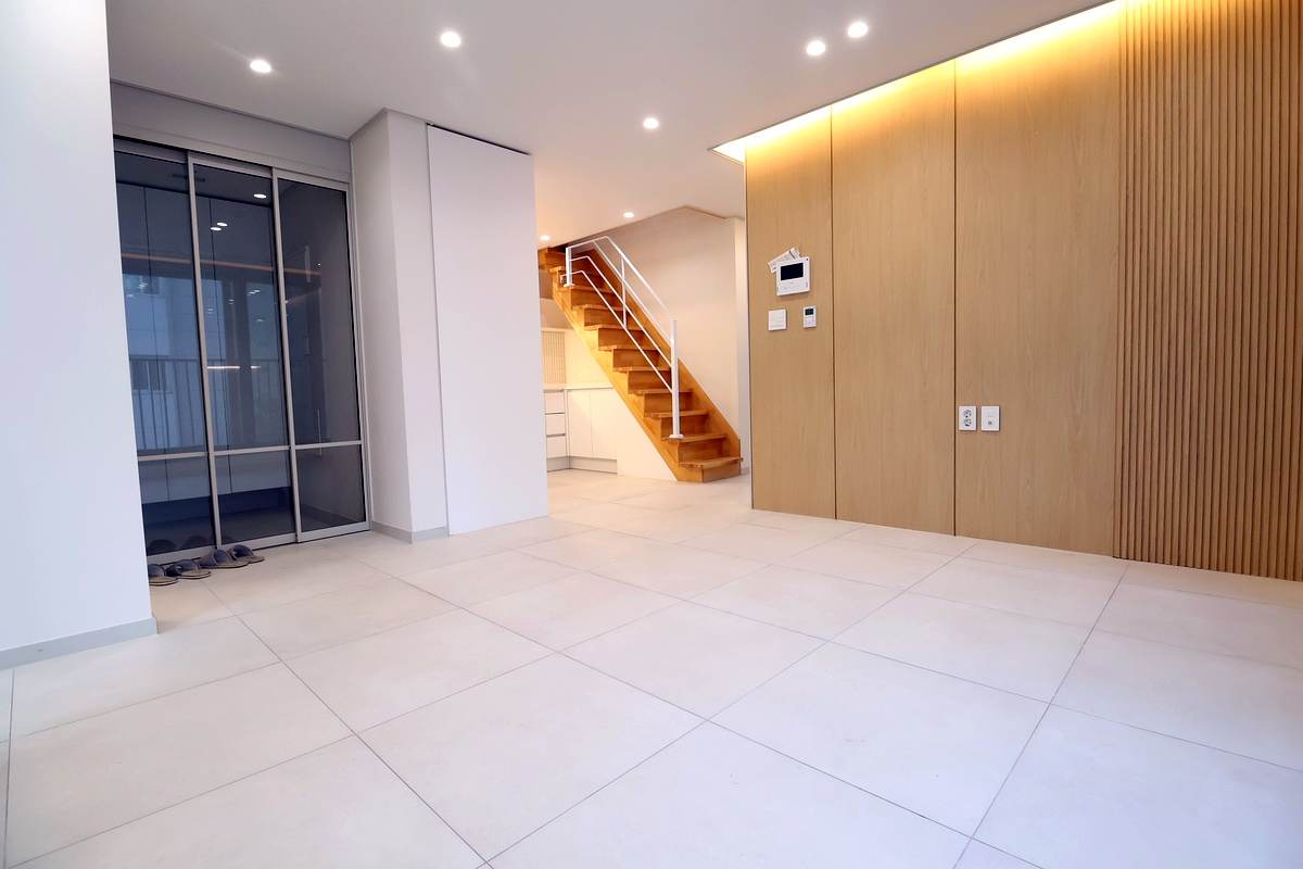 - 복층 테라스: 주방 옆 안정적인 계단을 따라 올라가면 넓은 복층 공간이 나타납니다. 나만의 홈카페나 작은 정원을 꾸밀 수 있는 야외 테라스는 이 집의 하이라이트라고 할 수 있죠.