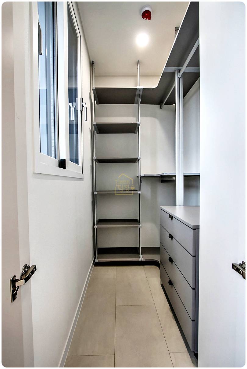 공간이 꽤 넉넉해서 팬트리 선반을 설치하면 대형 가전이나 식자재를 숨겨두는 훌륭한 수납고가 됩니다.