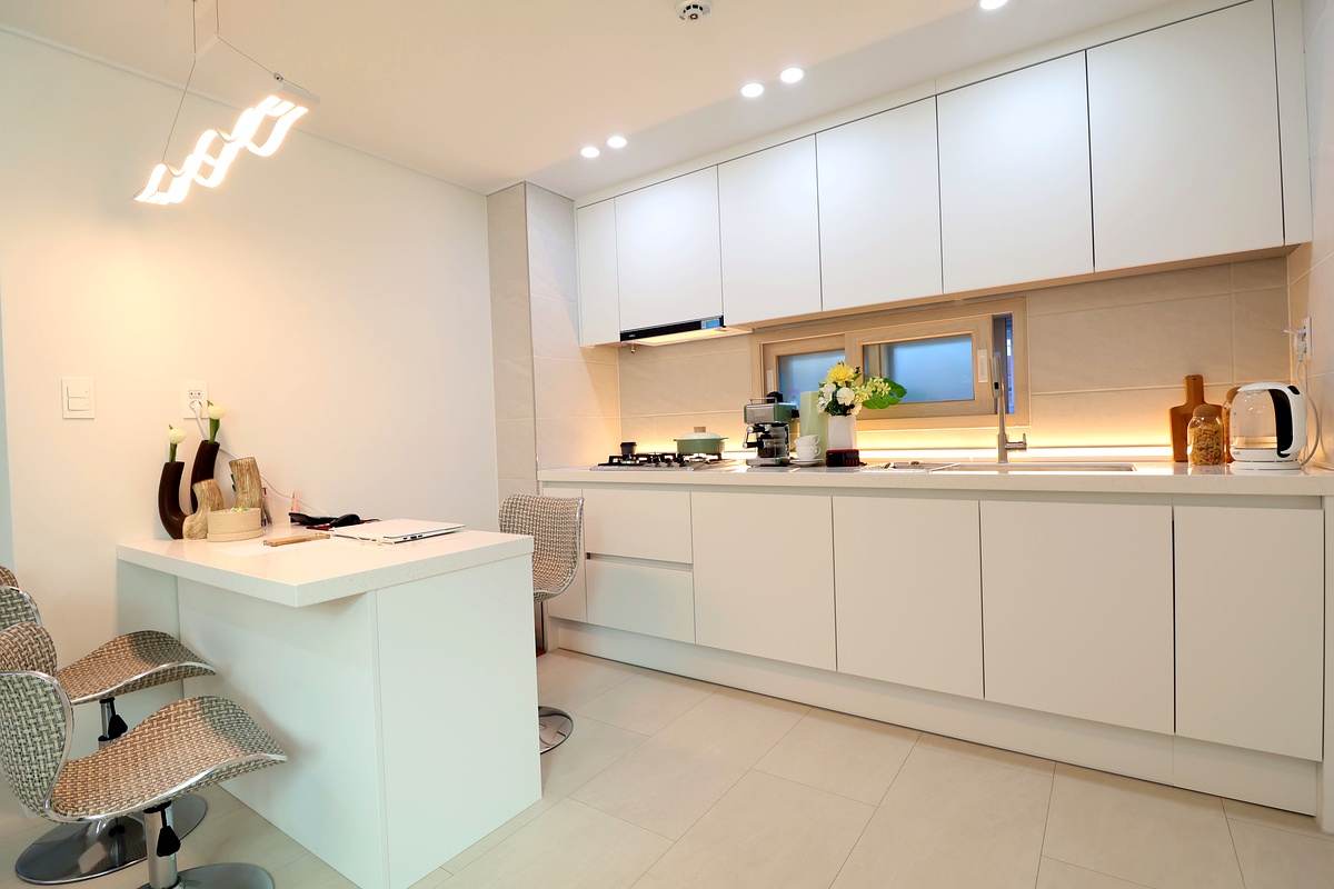 - 주방: 일자형 구조에 상·하부장 풀 구성, 환기용 주방 창 별도 설치