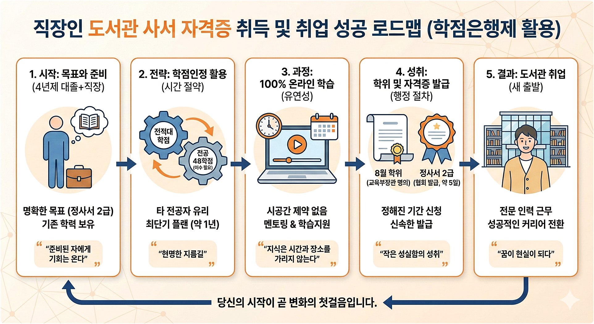 오늘은 4년제 졸업 후 다시 공부를 시작해 정사서 2급 면허를 취득하고 지역 도서관에 채용된 학습자의 성공 스토리를 소개합니다.