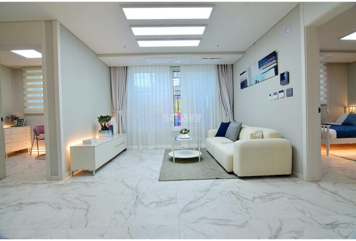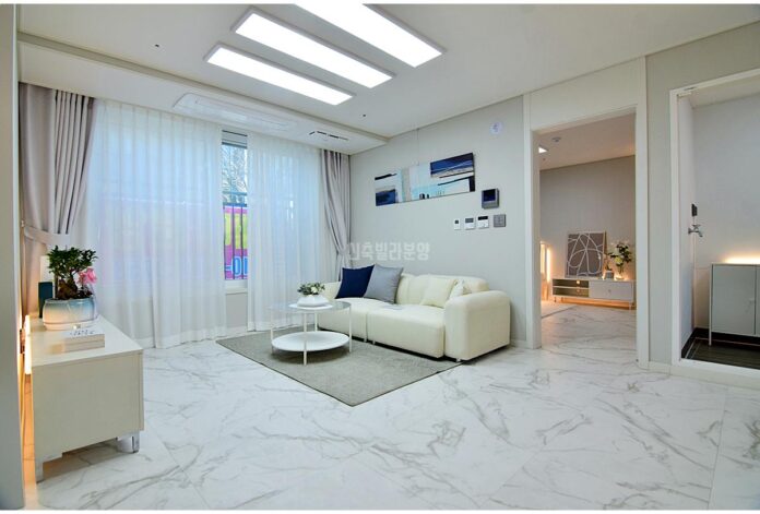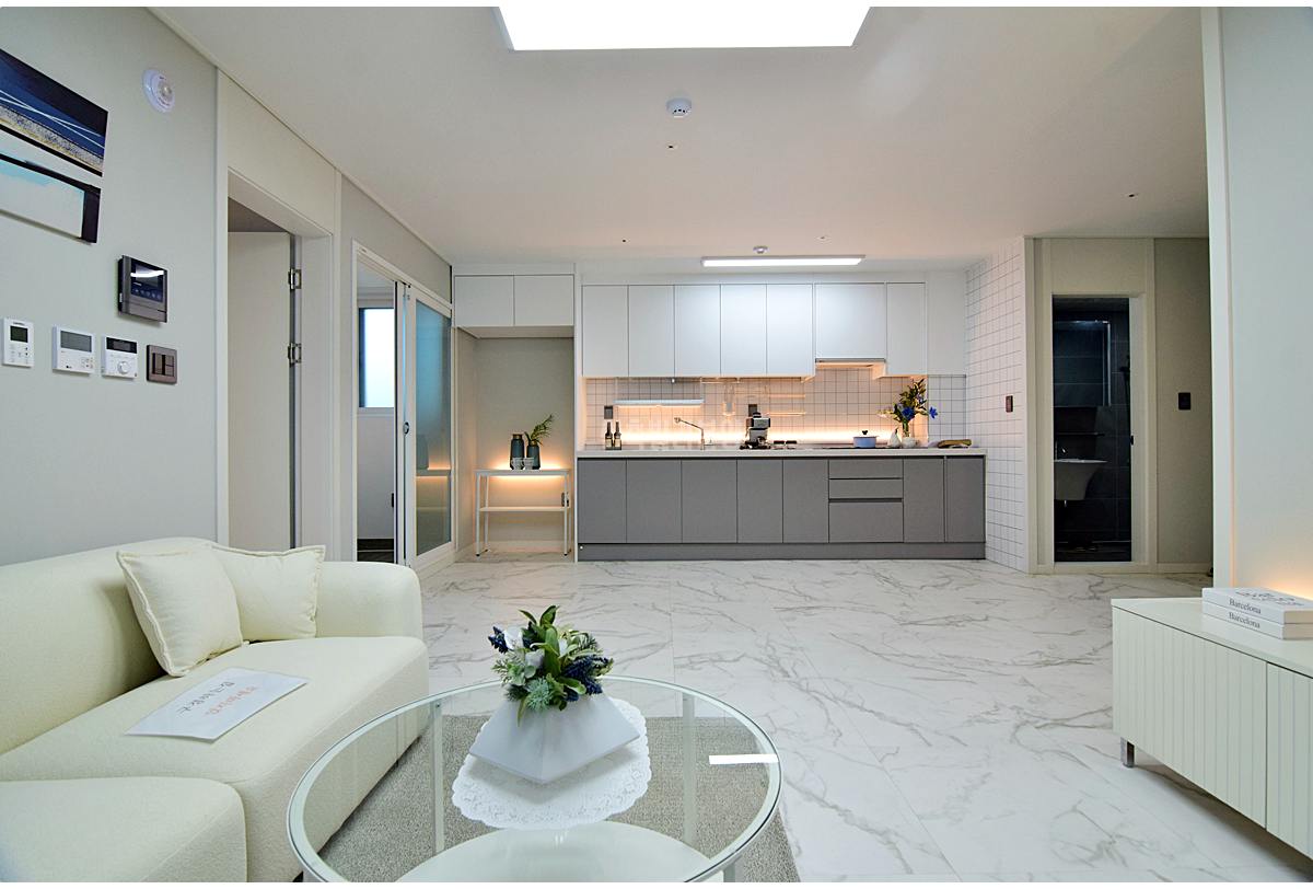 가능동신축빌라 거실은 넓고 밝아서 가족 모두가 모여서 시간을 보내기 딱 좋은 공간이에요. 1대 1 맞벽 구조로 되어 있어서 소파나 TV, 책장 등 다양한 가구를 충분히 배치할 수 있고, 포세린타일로 바닥이 마감되어 있어 고급스러운 느낌까지 준답니다. 거실 창문은 막힘이 없어서 햇빛도 잘 들어오고 환기도 잘 돼서 항상 쾌적한 분위기를 유지할 수 있어요.