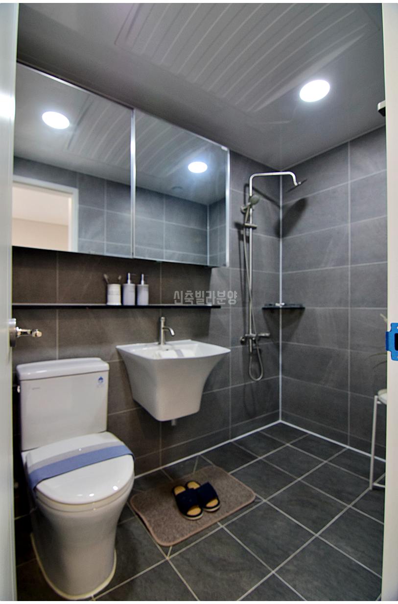 의정부신축빌라 욕실은 두 곳 모두 넓어서 사용하기가 정말 편리해요. 메인 욕실에는 해바라기수전이 설치되어 있어서 샤워할 때도 아주 편안하고, 서브 욕실에는 환기창이 없어 조금 아쉽지만 그래도 실용적으로 이용할 수 있게 잘 설계되어 있습니다.