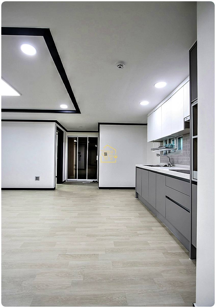 호불호 없는 편안한 인테리어에 어두운 몰딩으로 포인트를 준 디자인이 특징이다. 거실 중앙형 판상 구조는 안정감과 개방감을 동시에 제공한다.