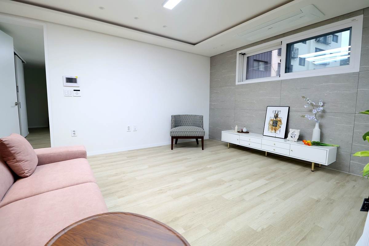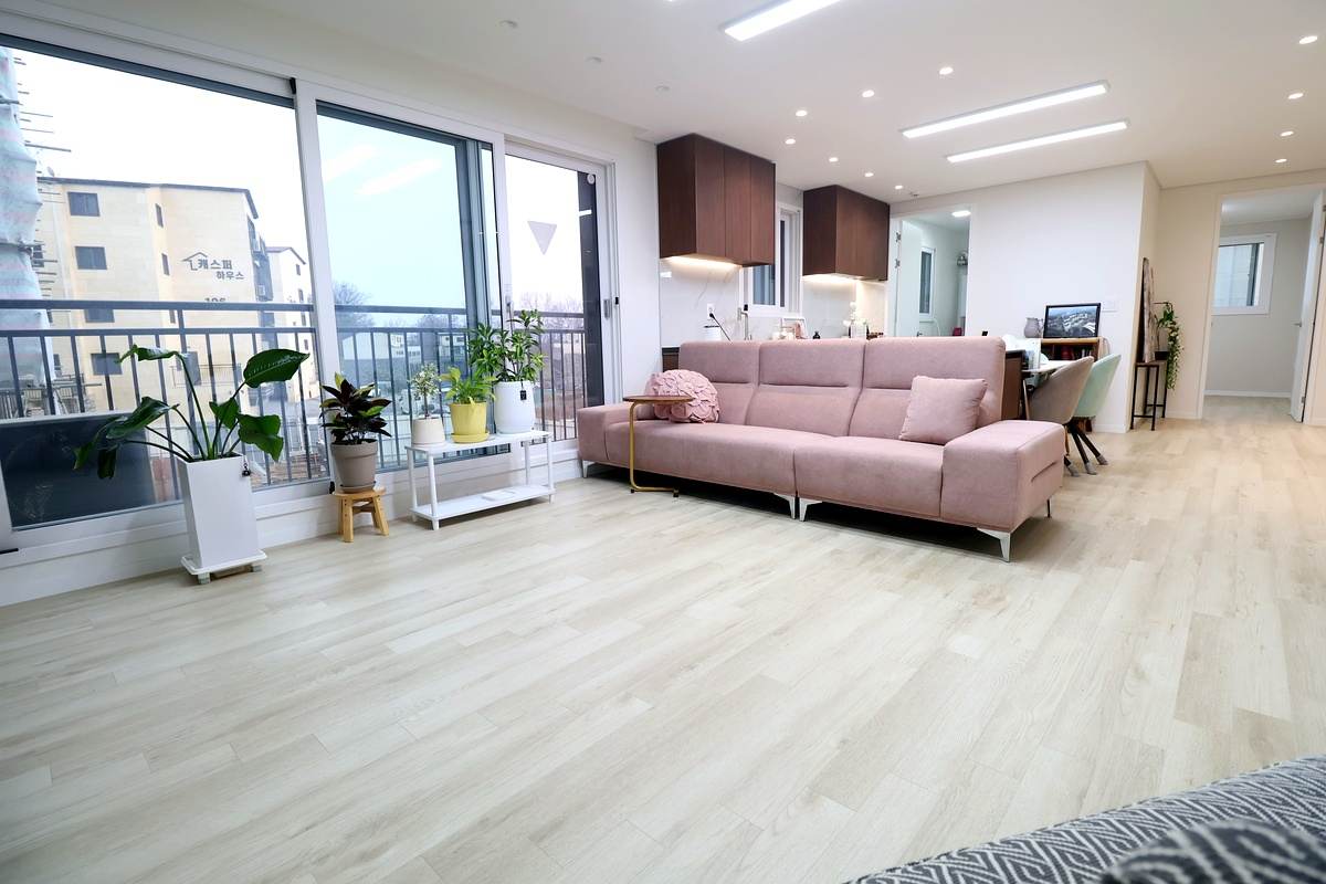 4인용 소파를 두어도 공간이 넉넉하게 남는 사이즈라 가족들이 모여 생활하기에 부족함이 없어 보였고요.