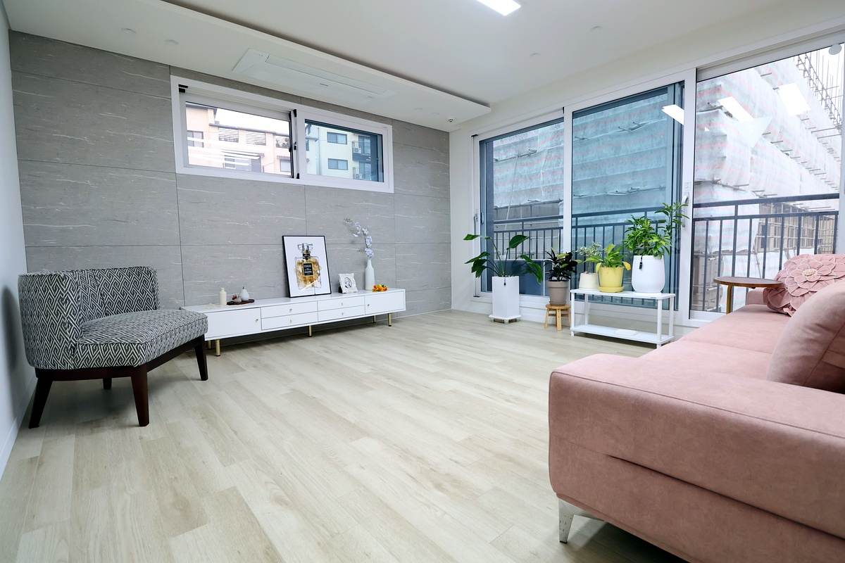백사면신축빌라 현관을 지나 거실로 들어서니 탁 트인 통창이 가장 먼저 반겨주더라고요.