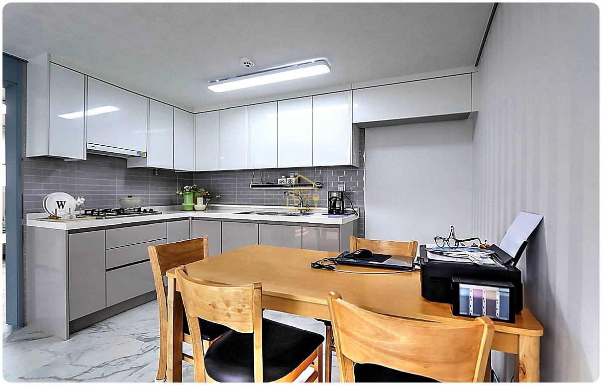 주방은 주부님들의 선호도가 높은 ㄱ자형 구조에 가스레인지를 채택하여 실용성을 높였습니다.