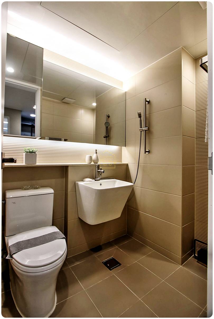 욕실은 해바라기 수전, 세면대 수납장, 다용도 선반이