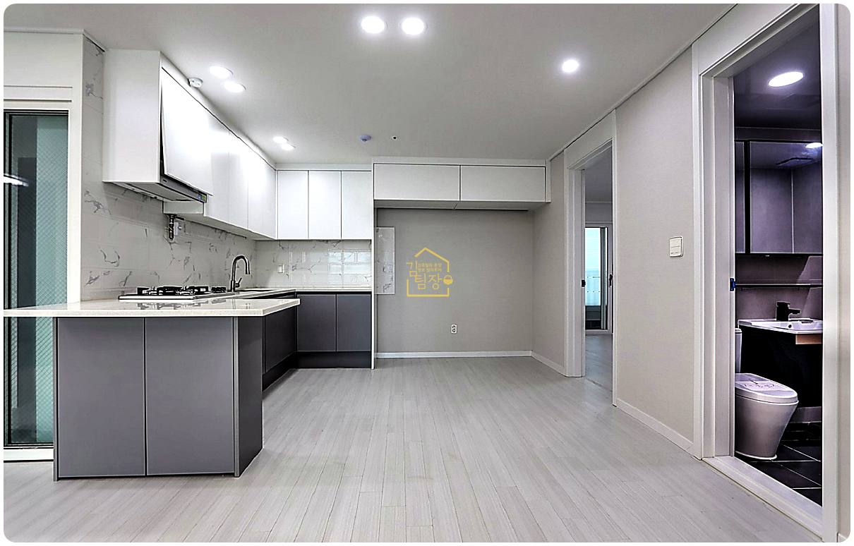 거실이랑 주방이 일자로 시원하게 뚫린