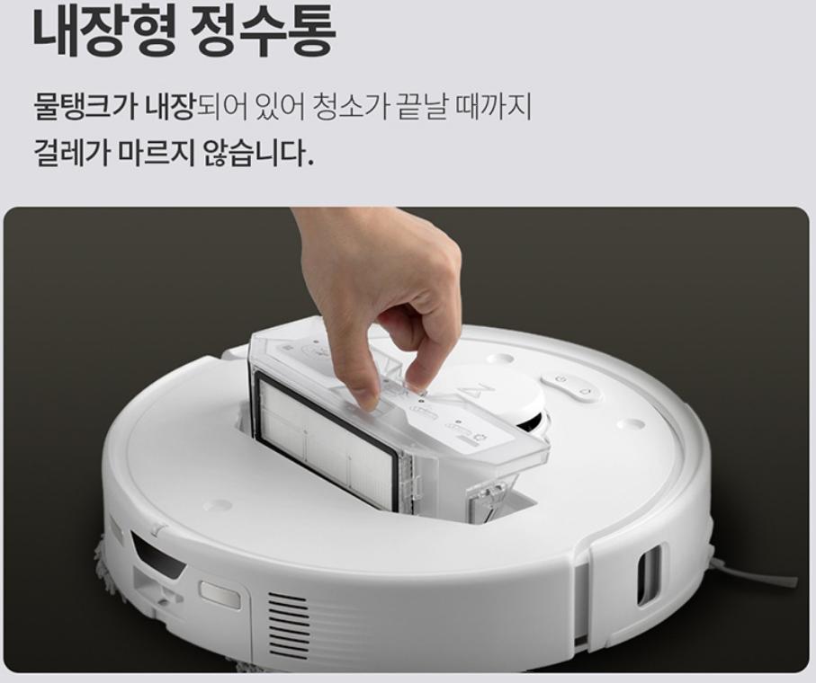 - 물걸레를 75℃ 고온수로 세척하고 45℃ 온풍으로 건조해 세균 번식을 원천 차단합니다. 아이가 있는 집이나 위생에 민감한 가정에 딱입니다.